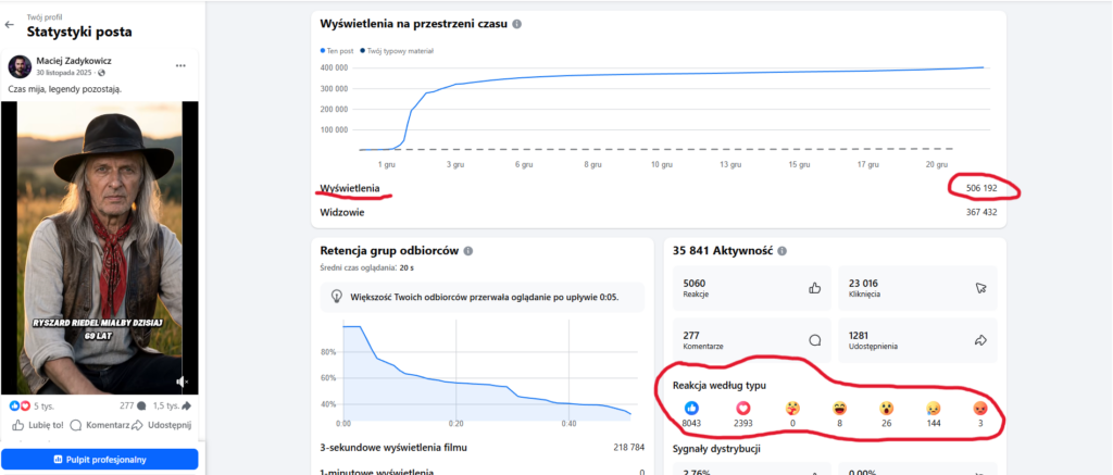 się klikają? Spójrz na statystyki z moich Rolek stworzonych 100% AI.